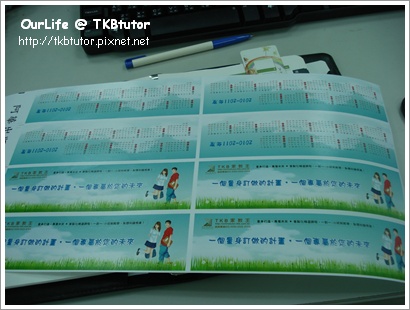 也帶了一疊我們自製剛完成、還熱騰騰的年曆書籤小卡送給陪考的家長,
