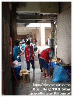 到了十二點也終於全部考完了,華江的學生志工們正在打掃校園;